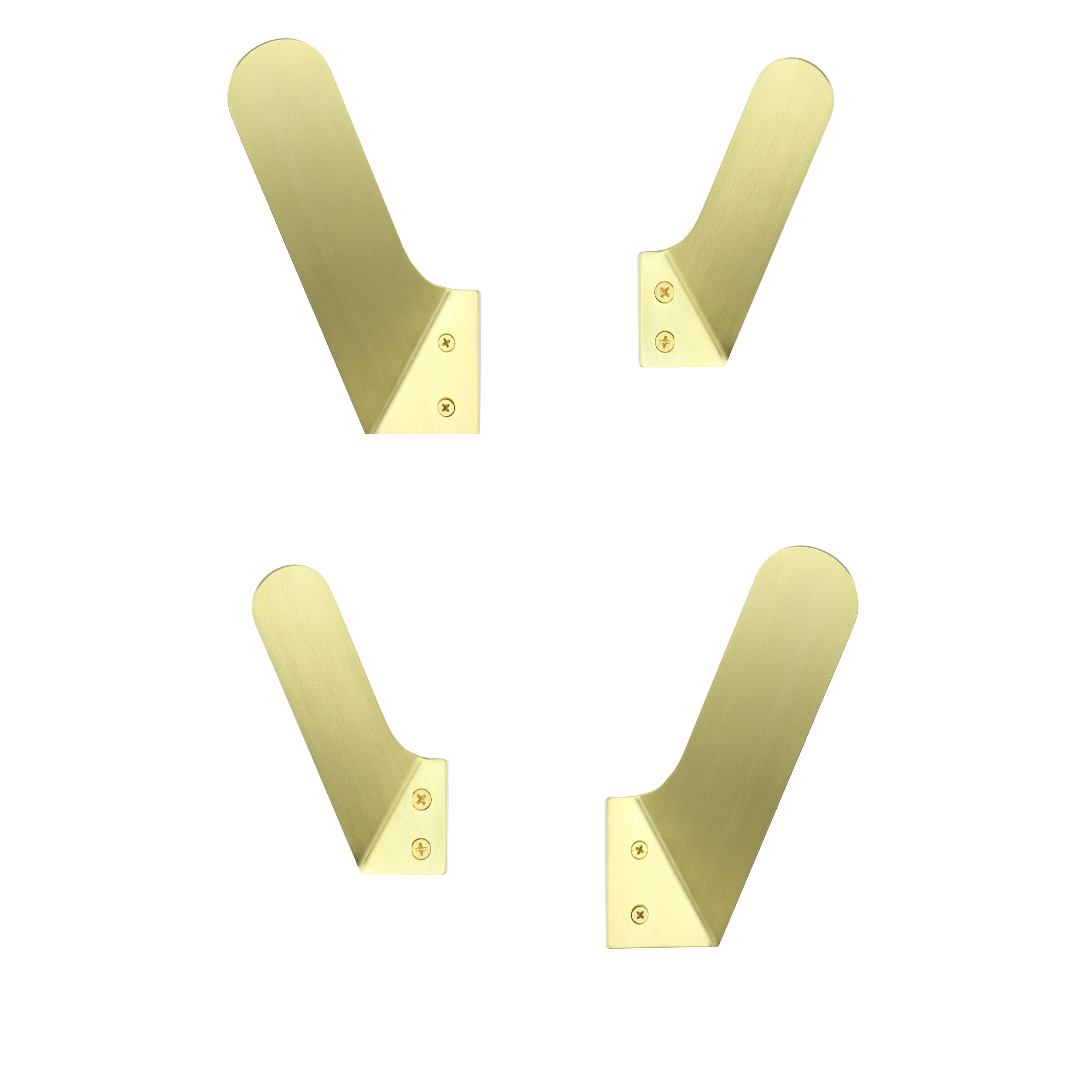 Modern brass wall hook designed for commercial and residential spaces. Although not so tiny, these hooks are a smaller option of the regular Merkled Brass Hooks. Perfect for hanging smaller items like hand towels or anything in a modern entryway, bathroom or kitchen. The low profile design also enables them to be hung behind doors. The strength relies on one slight bend in the arm of the hook.