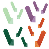 Minimal modern wall hooks designed for commercial and residential spaces. Lightweight and buoyant aluminum gives them strength and ensures they will never rust, making them a great option for indoor and outdoor spaces. Perfect addition to any modern space.